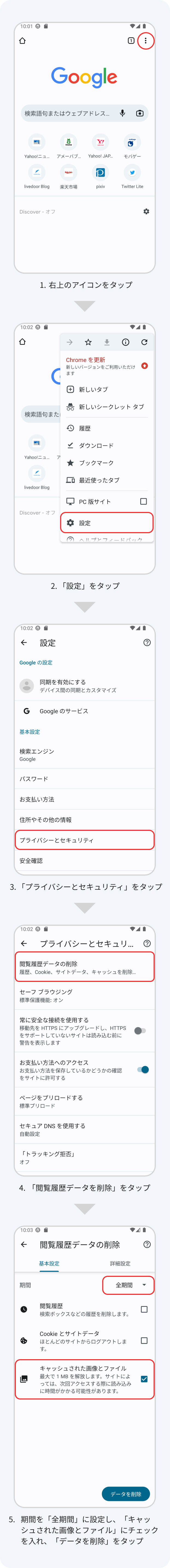キャッシュクリアの方法
